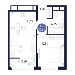 Общая площадь37,64 м²