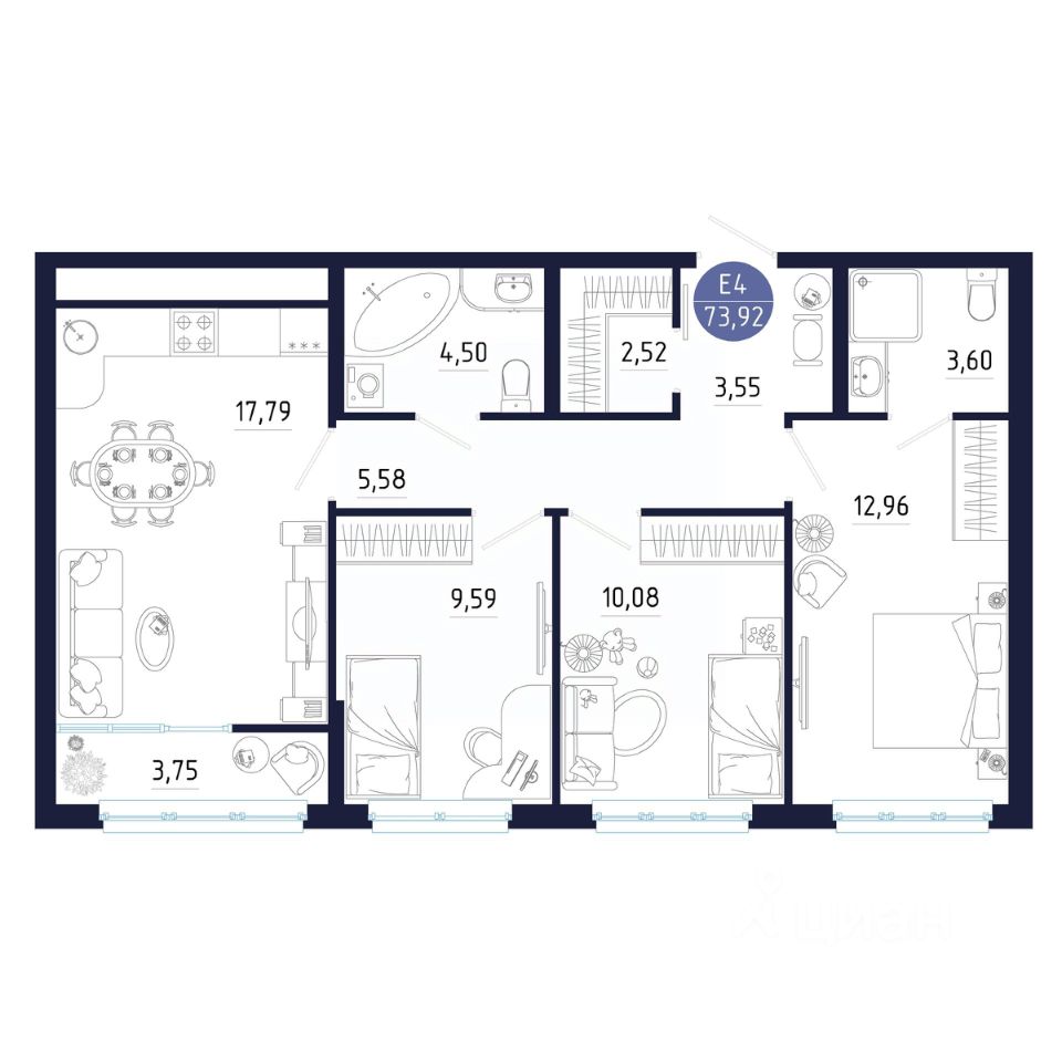 Общая площадь73,92 м²