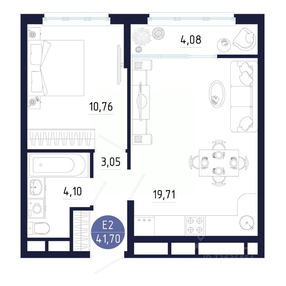 Общая площадь41,7 м²
