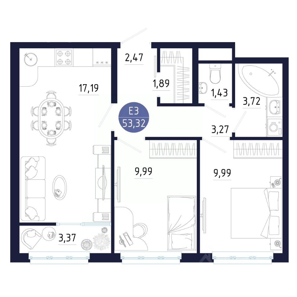 Общая площадь53,32 м²