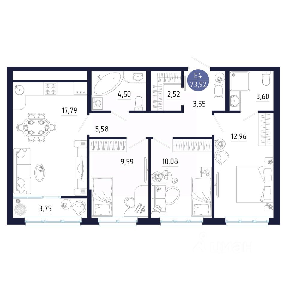 Общая площадь73,92 м²