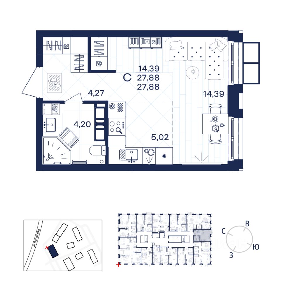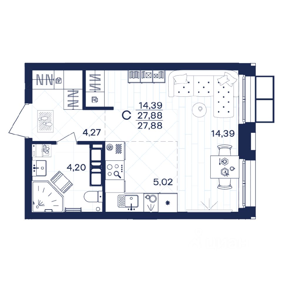 Общая площадь27,88 м²