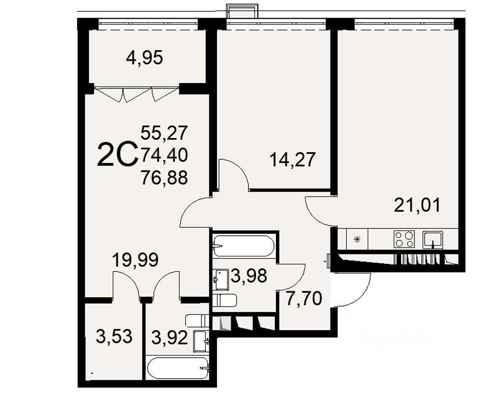 Продаётся 2-комнатная квартира в строящемся доме (Дом 2), срок сдачи: II-кв. 2026, общей площадью 76.88 кв.м., на 16 этаже. Жилой комплекс "Овация" от Группы компаний "ЕДИНСТВО" - это новый проект комфорт-класса в 5 минутах от центра города. Высокотехнологичный и современный комплекс, отвечающий запросам каждого, созданный для жизни в мире высоких скоростей. Овации локации! Комплекс возводится в развитой части города: на улице Федора Смирнова, в двух минутах от Красноармейского проспекта в Привокзальном районе. Благодаря расположению, вблизи находятся детские сады, школы, магазины и аптеки. Быстрый выезд сразу в несколько районов города поможет приехать к назначенному времени и заметно сократит расстояние поездки. Насладиться свободными часами с семьей и совершить покупки можно в ТРЦ "Сарафан", который находится в 10 минутах пешей прогулки от дома. Овации архитектуре! Ощутите динамику и энергию города благодаря стилевому решению фасадов с четкой геометрией, сочетающимися плавными линиями и гармоничной палитрой двух домов. Арочная форма окон добавляет шарма визуальному образу и ярко выделяет комплекс, задавая тренды развития всего района. Овации комфорту! Уютный двор между домами с авторским ландшафтным дизайном и зонами для отдыха созданы для знакомств с соседями, комфортным времяпрепровождением наедине и занятий на свежем воздухе. Одна из особенностей комплекса - благоустроенная набережная на территории с доступом для жителей. Мы также позаботились о том, чтобы у будущих питомцев в дворовом пространстве было свое любимое место - для них подготовлена отдельная площадка в 400 кв.м. Овации безопасности! Парковочные места на территории комплекса вынесены за пределы домов: это помогает избежать "сквозного проезда" и гарантирует всем жителям безопасность. Полностью закрытая территория и круглосуточное видеонаблюдение не дадут возможности попасть посторонним. Естественное озеленение по всему периметру будет скрывать от посторонних глаз внутреннюю жизнь дворового пространства. Овации семье! Отдельное внимание мы уделили маленьким жителям нашего комплекса: в дворовом пространстве подготовлены отдельные развивающие спортивные зоны, в зависимости от возраста и интереса ребенка. Все элементы создают замкнутый контур, который дает ощущение надежности и защиты, а разнообразие малых архитектурных форм делают площадку выразительной и функциональной во все времена года. Многоуровневая подсветка вдоль всей территории поможет находиться на свежем воздухе в любое время суток. Для удобства жителей внутри секции предусмотрены просторные колясочные для хранения крупногабаритного инвентаря. Жилой комплекс "Овация" - гармоничное сочетание самодостаточного комплекса и городского ритма жизни!