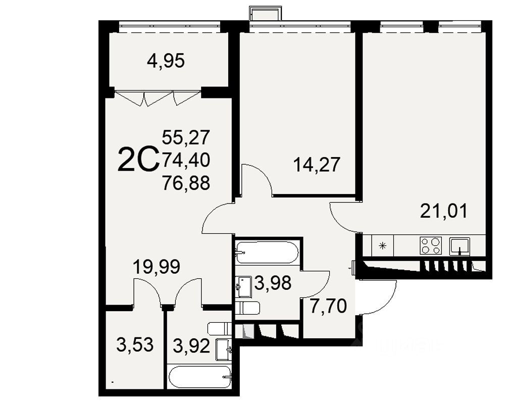 Продаётся 2-комнатная квартира в строящемся доме (Дом 2), срок сдачи: II-кв. 2026, общей площадью 76.88 кв.м., на 13 этаже. Жилой комплекс "Овация" от Группы компаний "ЕДИНСТВО" - это новый проект комфорт-класса в 5 минутах от центра города. Высокотехнологичный и современный комплекс, отвечающий запросам каждого, созданный для жизни в мире высоких скоростей. Овации локации! Комплекс возводится в развитой части города: на улице Федора Смирнова, в двух минутах от Красноармейского проспекта в Привокзальном районе. Благодаря расположению, вблизи находятся детские сады, школы, магазины и аптеки. Быстрый выезд сразу в несколько районов города поможет приехать к назначенному времени и заметно сократит расстояние поездки. Насладиться свободными часами с семьей и совершить покупки можно в ТРЦ "Сарафан", который находится в 10 минутах пешей прогулки от дома. Овации архитектуре! Ощутите динамику и энергию города благодаря стилевому решению фасадов с четкой геометрией, сочетающимися плавными линиями и гармоничной палитрой двух домов. Арочная форма окон добавляет шарма визуальному образу и ярко выделяет комплекс, задавая тренды развития всего района. Овации комфорту! Уютный двор между домами с авторским ландшафтным дизайном и зонами для отдыха созданы для знакомств с соседями, комфортным времяпрепровождением наедине и занятий на свежем воздухе. Одна из особенностей комплекса - благоустроенная набережная на территории с доступом для жителей. Мы также позаботились о том, чтобы у будущих питомцев в дворовом пространстве было свое любимое место - для них подготовлена отдельная площадка в 400 кв.м. Овации безопасности! Парковочные места на территории комплекса вынесены за пределы домов: это помогает избежать "сквозного проезда" и гарантирует всем жителям безопасность. Полностью закрытая территория и круглосуточное видеонаблюдение не дадут возможности попасть посторонним. Естественное озеленение по всему периметру будет скрывать от посторонних глаз внутреннюю жизнь дворового пространства. Овации семье! Отдельное внимание мы уделили маленьким жителям нашего комплекса: в дворовом пространстве подготовлены отдельные развивающие спортивные зоны, в зависимости от возраста и интереса ребенка. Все элементы создают замкнутый контур, который дает ощущение надежности и защиты, а разнообразие малых архитектурных форм делают площадку выразительной и функциональной во все времена года. Многоуровневая подсветка вдоль всей территории поможет находиться на свежем воздухе в любое время суток. Для удобства жителей внутри секции предусмотрены просторные колясочные для хранения крупногабаритного инвентаря. Жилой комплекс "Овация" - гармоничное сочетание самодостаточного комплекса и городского ритма жизни!