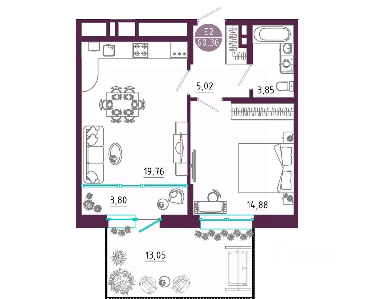 Общая площадь60,36 м²