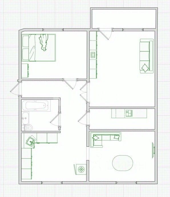 • Комнаты: 17,2 м² + 13,5 м² + 8,8 м²