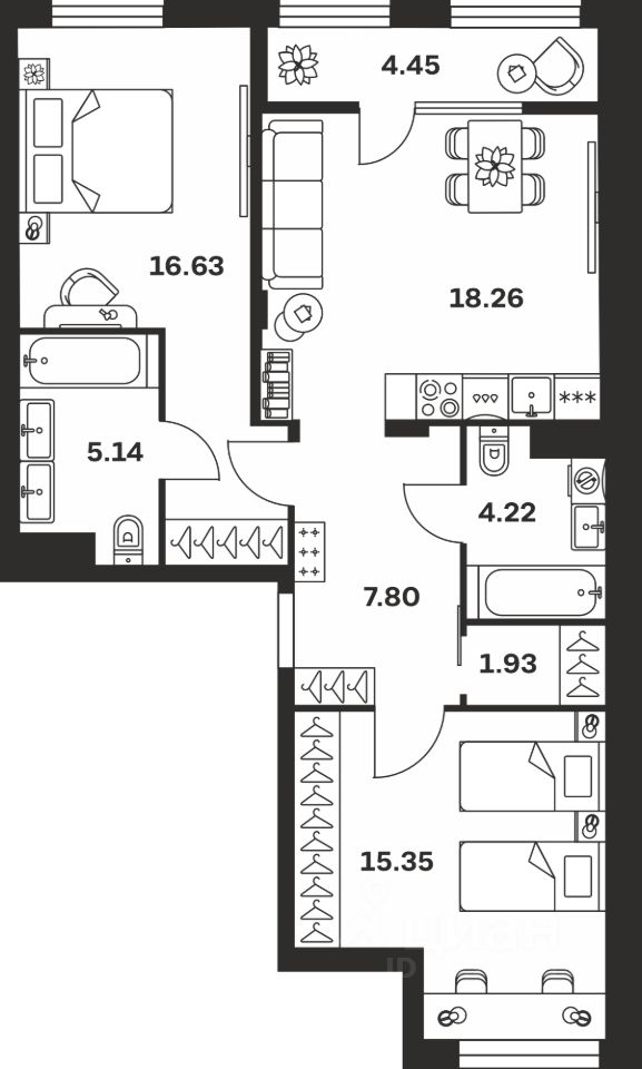 Общая площадь73,78 м²