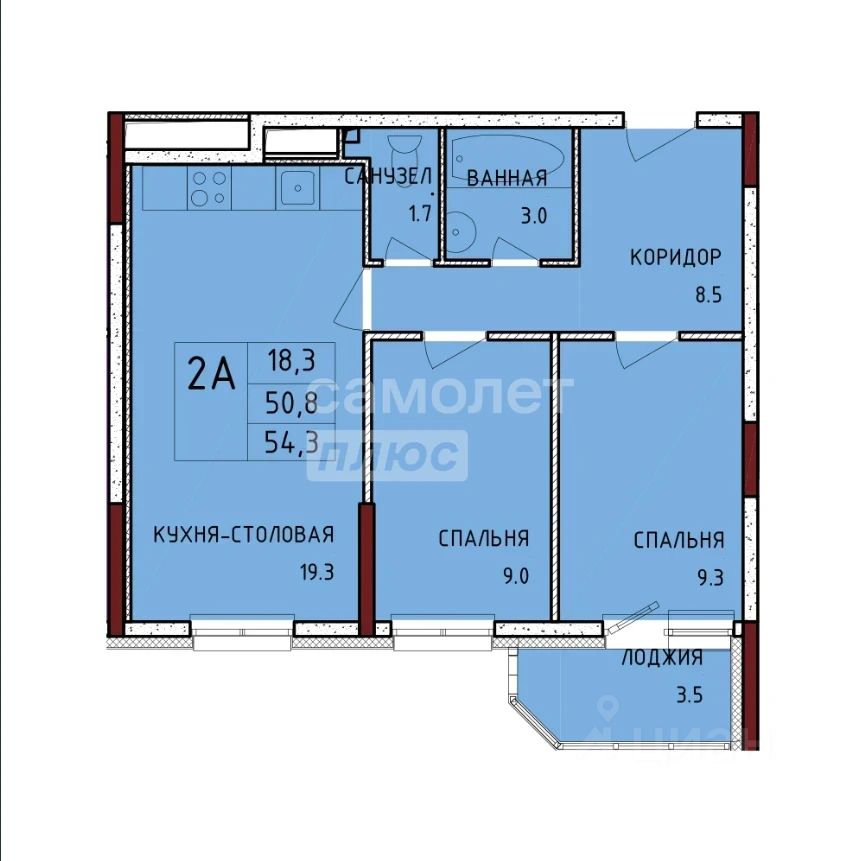 Планировка (евро-трёшка с зонированием):