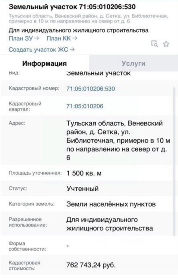 Кадастровый номер участка 71:05:010206:*** указал продавец