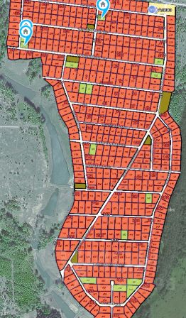 Предлагается к продаже земельный участок площадью 8.2 соток (319 на плане посёлка) в обжитом коттеджном поселке Алино.