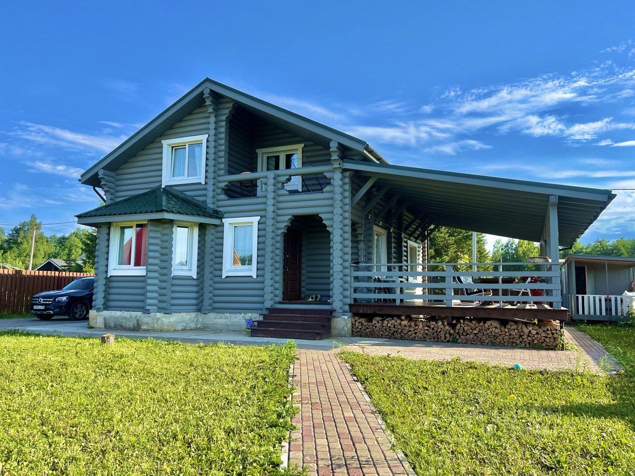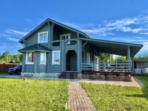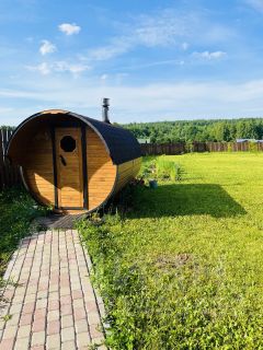 На территории участка большая парковка, веранда с крышей и уличной кухней, детская площадка, баня-бочка, бытовка, дом около 140 кв.м, плодовые деревья и кустарники.