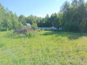 Дачный участок у леса (грибы, земляника), на ровной поверхности. На территории хозблок 2х3 на сваях. Посадки: 2 ели, 2 груши, несколько слив, 2 яблони, кусты смородины, калина, боярышник, крыжовник. Возможна подводка электричества, документы есть, столб рядом.