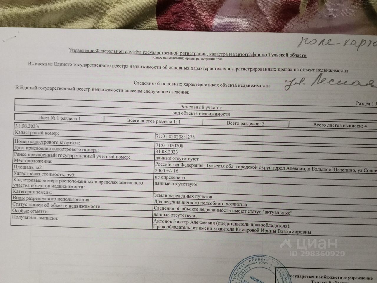 Здравствуйте, продаю участок 20 соток, участок размежёванный, документы все в порядке, я собственник. Д. Шелепино участок расположен по ул. Лесная, участок ровный, подъезд круглогодичный, от г. Алексина 3 км., лес, водоемы в шаговой доступности. Линия газа, электричество, проходит рядом с участком. Если заитерисует моё объявление, звоните, в любое время.