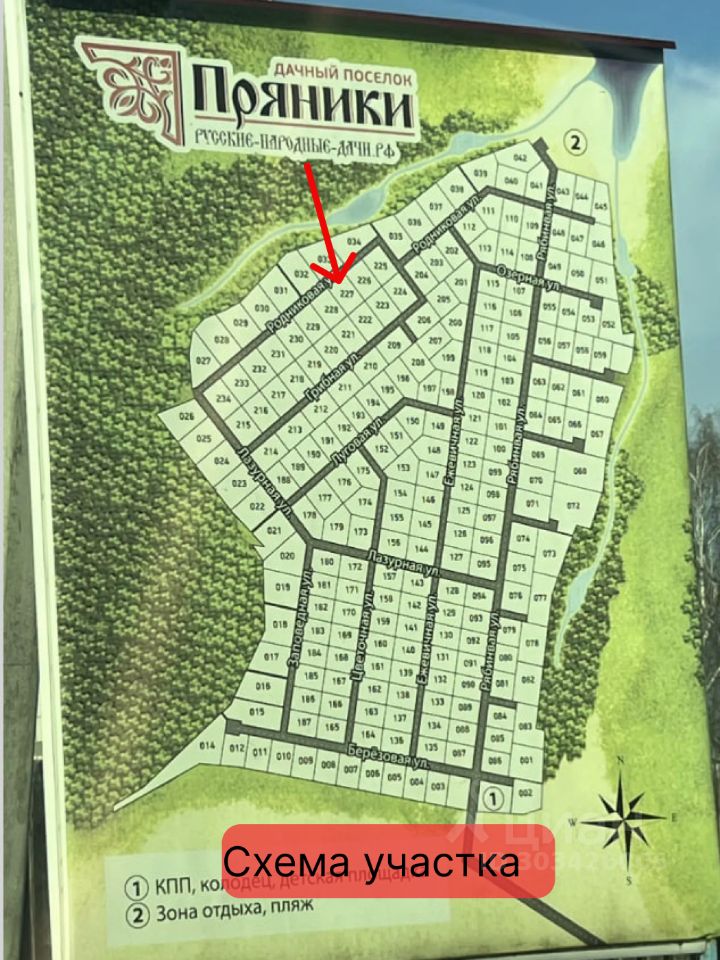 Посмотреть участок можно самостоятельно в любое удобное для вас время - на КПП сообщите, что вы на просмотр участка 227.