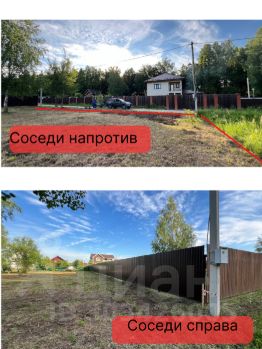 - Слева: застроенный участок с забором, 20 соток, дачники
