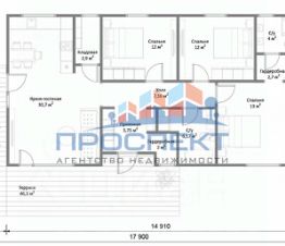 1 этаж: большая кухня-гостиная (высота потолка 4.5 м), котельная, большая прихожая и кладовка, сан узел, 3 спальни, в мастер спальне - свой сан узел и гардероб.