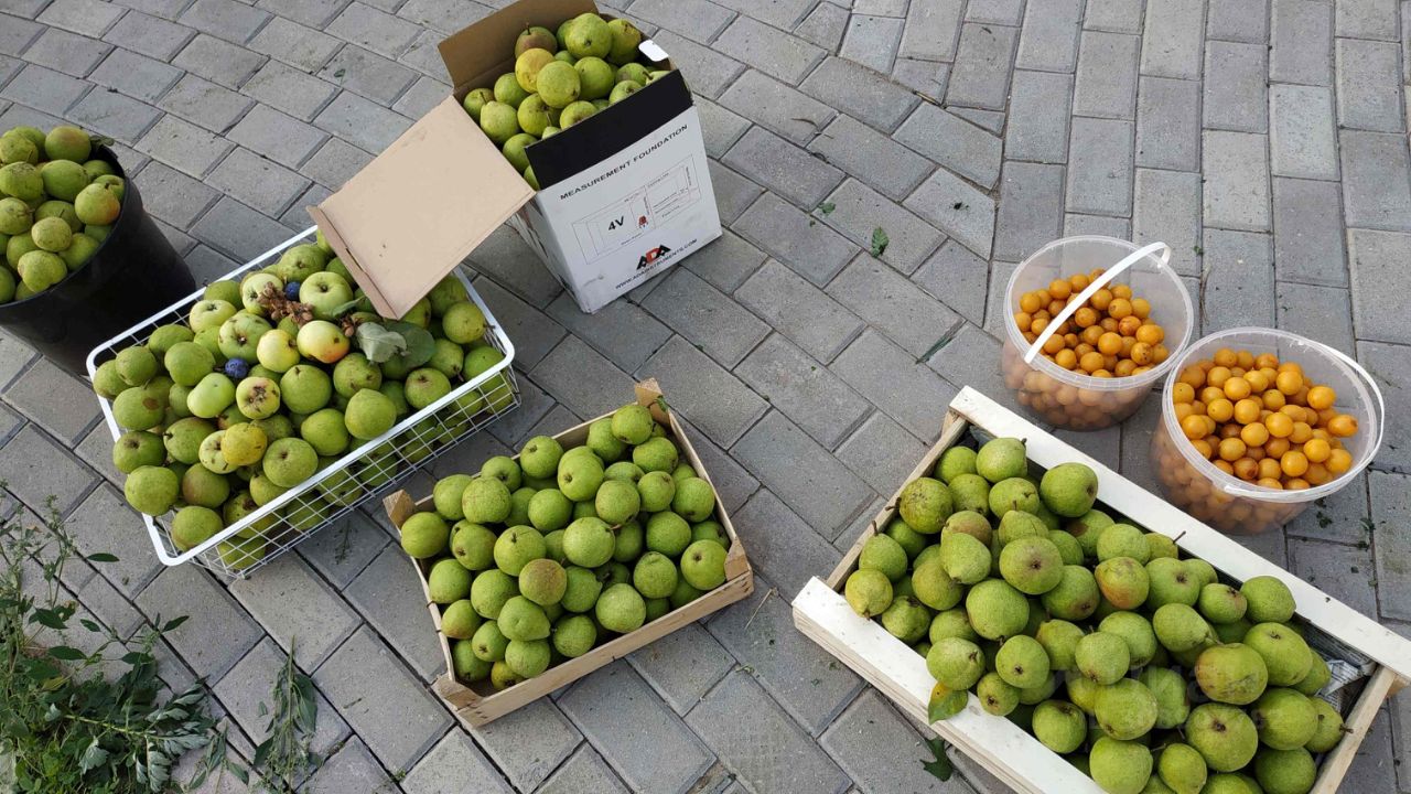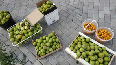 По участку - дорожки, также посадки деревьев - яблони, груши, сливы, сосны, березы, клены, липы, рябины и супер Ель :).