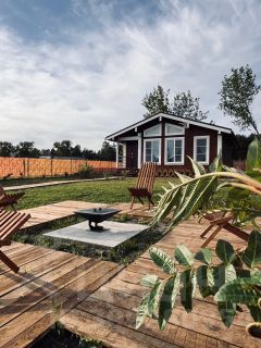 Дом построен из качественного бруса на заказ из северного края (зимой тепло, летом - прохладно). В доме 2 спальни, санузел. Просторная гостиная 27 м2 с большими панорамными окнами и высокими потолками даёт максимум света в любое время года.