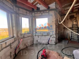 - **Коммуникации:** газ уже заведен в дом, установлен счетчик и газовый котел, сделана разводка водопровода по всему дому, установлен унитаз и поддон под душевую кабину, установлен переливной септик, разведена проводка 220/380 кВт (проложены провода разного сечения под землей).