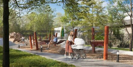 На территории расположены игровые комплексы с травмобезопасным покрытием для детей всех возрастов и современные спортивные площадки с оборудованием. Здесь вы сможете играть в баскетбол, волейбол и футбол, а зимой будет заливаться каток.