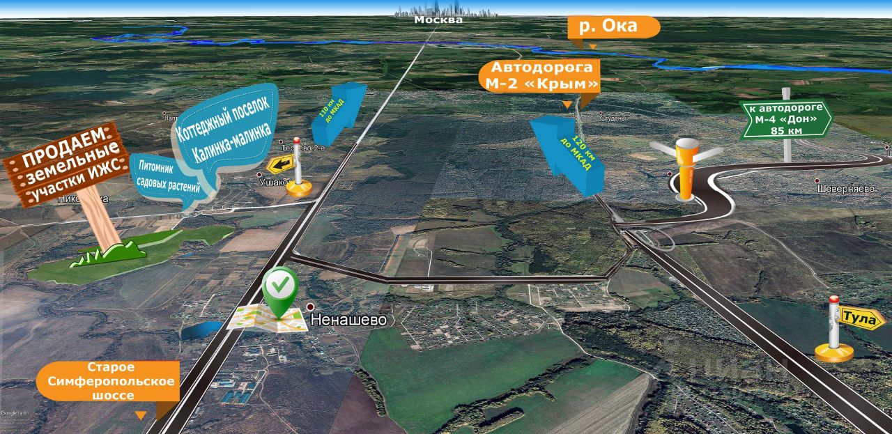 Площадь участка 84 Га (8400 соток, 840000 кв. м), 110 км. до Москвы, 45 км. до Тулы, Расположение: Тульская обл., Заокский район, п. Ненашево