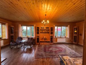 В доме 4 спальни. На первом этаже: кухня -гостиная , большая комната спальня- гостинная с камином и санузел. На втором этаже: 3 спальни, второй санузел и сауна с электрической печью, отделана вагонкой из липы . Есть третий уровень (чердак) где можно оборудовать еще одну комнату. Круглогодично проживают соседи. Имеется асфальтированный подъезд к дому. На территории предусмотрено открытое место для стоянки автомобилей.