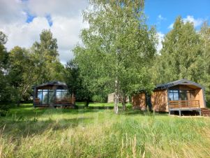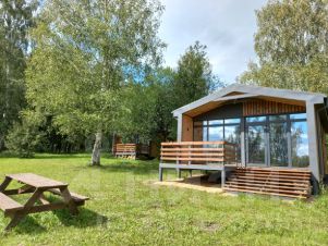 На участке 2,45 Га, премыкающем к водоему в березовой роще располагаются каркасные дома-барн 60 кв.м, с 1 и 2 спальнями, отделка имитация бруса, металлопрофиль антрацит, окна Рехау, утеплитель минеральная вата 150-200 мм, потолки от 3 м. :В 2 х- идет внутренняя отделка , 2 - собран каркас (материалы есть), 1 - сделан фундамент свайно винтовой.