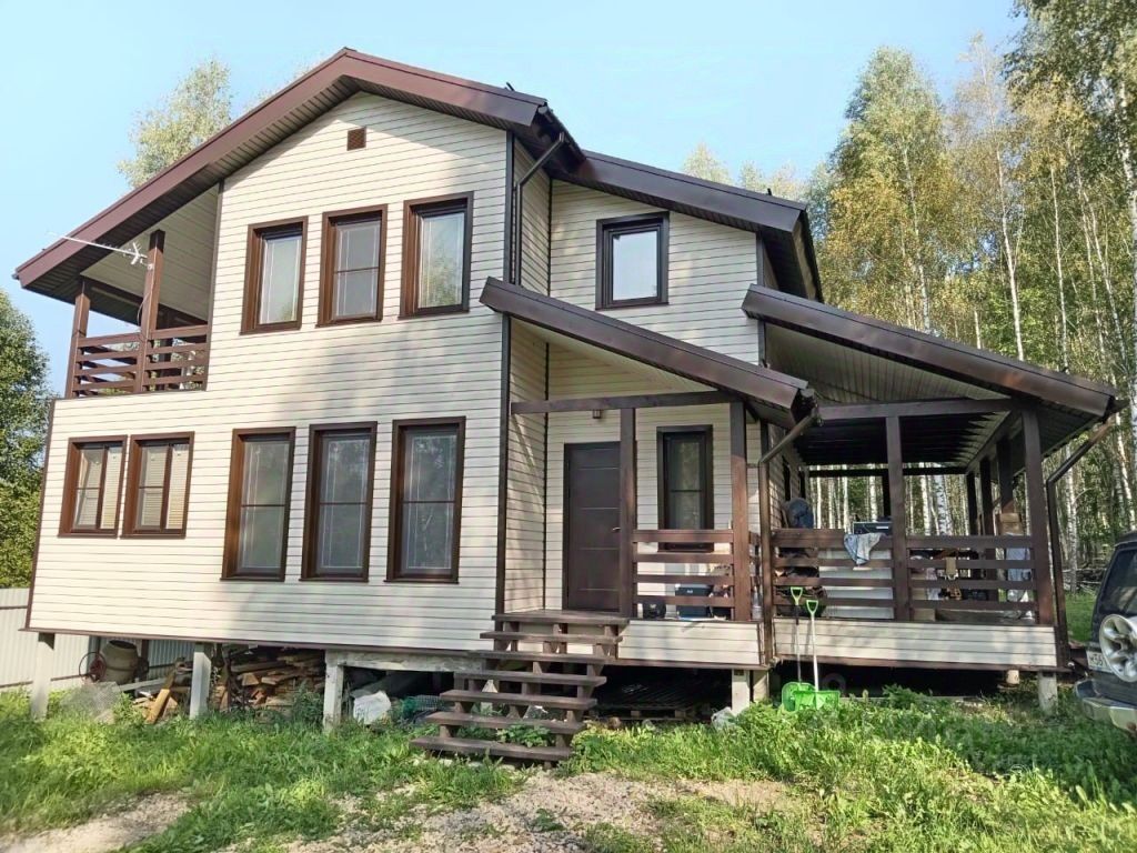 Стены выполнены по каркасной технологии (дерево из Архангельска), утеплитель и сайдинг производство Германия, две открытые веранды для отдыха.