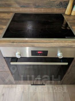 На кухне современный кухонный гарнитур со встроенной техникой, есть система вентиляции.