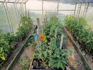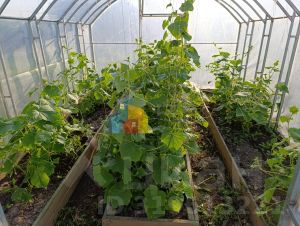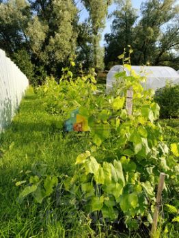 Участок ровный, ухоженный, посажены яблони, груши, вишни, смородина, виноград, розы. На огороде растёт картофель, морковь, лук, чеснок и т.д. Имеется три парника с автоматически открывающимися форточками и капельным поливом с помощью датчика времени. В одном - огурцы, другом - помидоры, третий используется как хозпомещение.