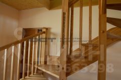Лестница : массив ясеня с мозаикой из травертина и стекла.