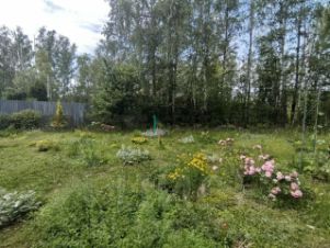 Участок 10 соток огорожен забором с откатными воротами. Рельеф участка ровный, что значительно упрощает ландшафтное планирование и создание различных зон. Высажены плодовые деревья и декоративные кустарники. Многообразие цветов, которые создают яркие акценты и делают участок живописным в любое время года. В конце участка своя березовая роща.
