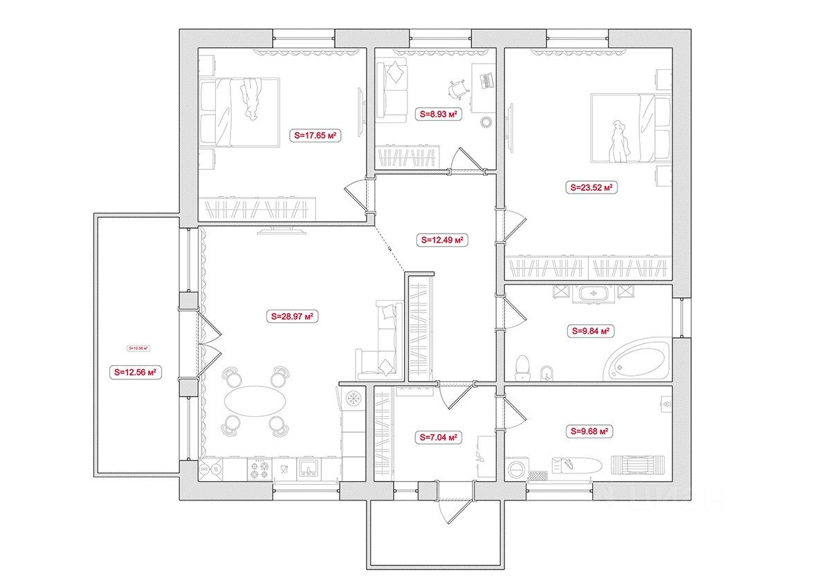 Комфортная планировка: 3 спальни, просторная кухня-гостиная с выходом на веранду, ванная комната и бойлерная.