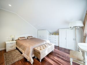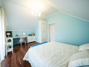 На 2-м этаже 4 раздельные комнаты-спальни, в т.ч. две из них с выходом на балкон, одна комната с гардеробной, вторая-яркая детская. Вы можете изменить функционал комнаты, к примеру, на кабинет. Раздельный санузел. Также есть выход на чердак, где можно хранить вещи.