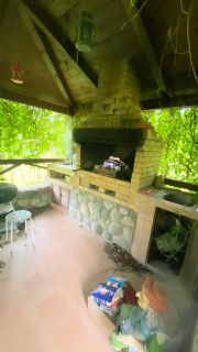 На участке беседка с зоной мангал и барбекю, также есть небольшой бассейн, колодец.