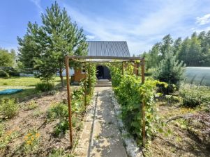 Помимо дома, на участке есть летняя бытовка с двумя комнатами, одна из которых отведена под хранение садового инвентаря, вторая жилая летняя комната, а также уютная открытая беседка.