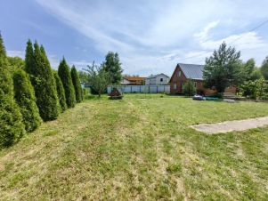 При въезде парковка где спокойно разместятся 3-4 машины, больше половины участка это зеленая лужайка, здесь можно побегать детворе, поставить бассейн, пожарить шашлыки и посидеть в беседке.
