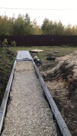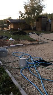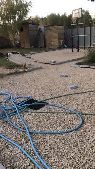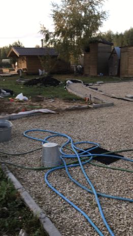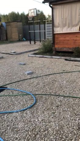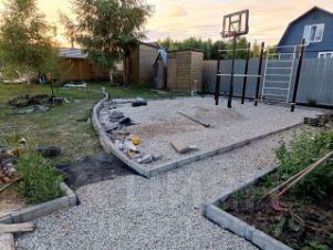 Парковка из гравия на 2 авто, забор по периметру: сетка и профлист;