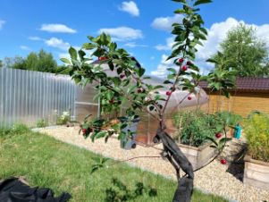 Плодоносящие деревья и кусты: яблоня, груша, слива, малина, клубника, смородина;