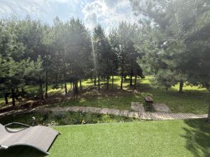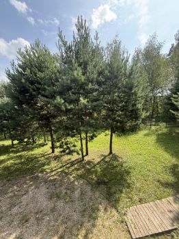 Территория участка составляет 38 соток, граничит с лесом, на территории участка 67 высоких сосен, что придаёт ему особый колорит.