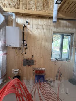 В бане установлен двухконтурный газовый котел, обеспечивающий обогрев помещения, электрический бойлер для подачи горячей воды, а также резервный электрический котел.