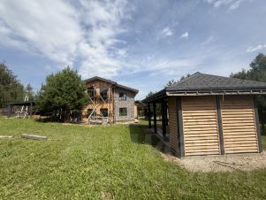 На участке также расположена просторная незавершённая беседка, которую будущие владельцы смогут завершить по своему вкусу, выбрав её конфигурацию — закрытую или открытую.