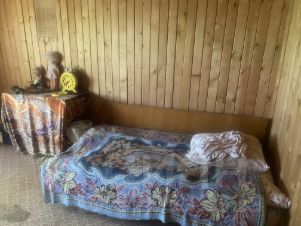 - втopoй дoм щитовой, внутри кухня + хозблок + помещение оборудованное под туалет (без септика) + в доме есть печка. Так же есть газовая плита, работающая от 2ух газовых баллонов по 50л, так же есть микроволновая печь и холодильник.