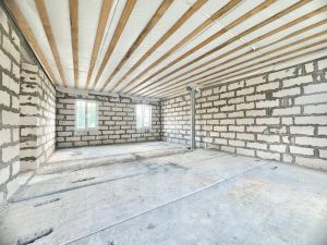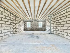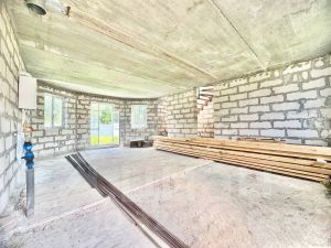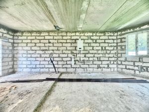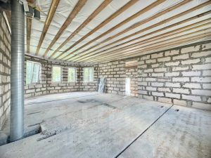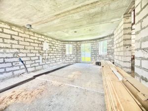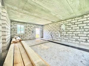 Дом стоит на свайно-ростверковом фундаменте, сложен из газосиликатных блоков, фасад утеплен и оштукатурен смесью Кнауф "Теплофасад", на крыше - металлочерепица. Установлены пластиковые окна REHAU. Смонтирован двухконтурный газовый котел HUBERT. На второй этаж ведет лестница из металлокаркаса.