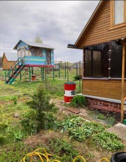 Продается двухэтажный дачный домик на участке 9 соток в СНТ "Надежда". Домик с террасой, которую можно использовать как открытую так и закрытую, так как имеются мягкие окна. Домик имеет зону кухни, комнату и второй этаж. На участке построен детский домик с горкой, песочница, два хоз. блока и два дачных туалета, есть место для машины.