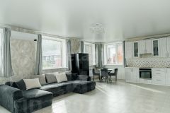 Дом находится в развитой части города с хорошей транспортной доступностью и инфраструктурой — в шаговой доступности магазины, школы, детские сады и остановки общественного транспорта. Объект подходит для комфортного проживания. Состояние отличное, готово к заселению.