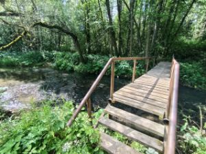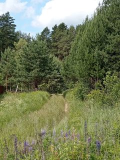 От участка до соснового леса, речки Скнижка, родника в соснах 500 метров.