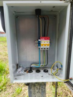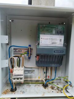 Распределительный щит на участок с возможностью подключения 220 В и 380 В. ВРУ - 0,4 ( вводно - распределительное устройство с трёхфазной сети с линейным напряжением 380 В)