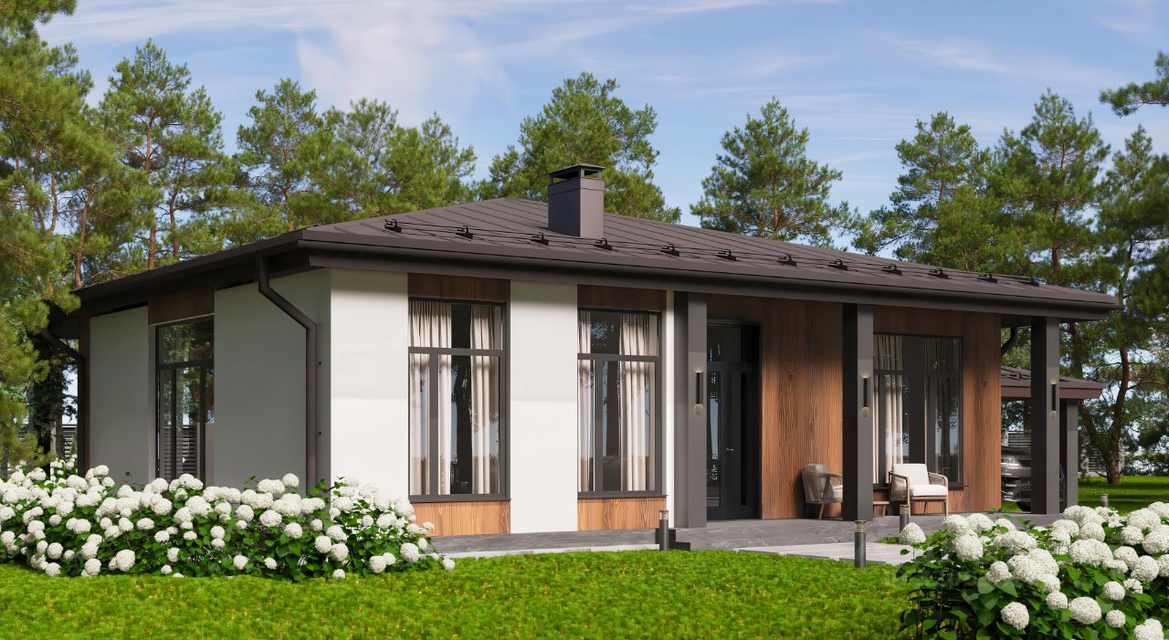Прекрасный дом, для проживания небольшой семьи. Дом спроектирован по современным, архитектурным тенденциям. Просторная гостиная с выходом на террасу, две спальни, прихожая с гардеробной, два санузла.