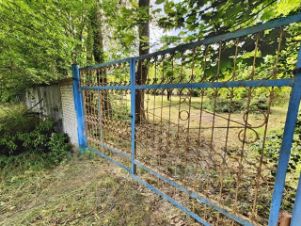 Земля - большая зеленая территория с замечательными "взрослыми" деревьями, кустарниками и т.д. Отдельный въезд. С двух сторон огорожена двухметровым бетонным забором. Граничит со второй частью базы отдыха, когда были одной территорией.